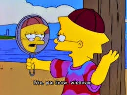 Verbal traps start early; as early as elementary school and middle school, perhaps when you are most influenced by peers and celebrities, and the when fitting in matters most. Even little Lisa Simpson, the brain of the dysfunctional Simpson bunch, calls on these verbal crutches to fit in with the cool crowd. http://www.youtube.com/watch?v=21lTu6FrTmk